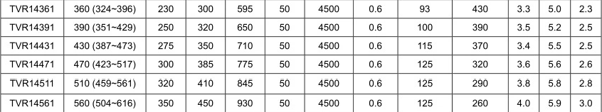 壓敏電阻片徑: Φ14mm 標稱壓敏電壓: 430V(387~473)