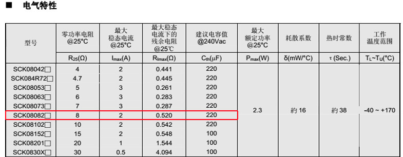 熱敏電阻型號(hào):