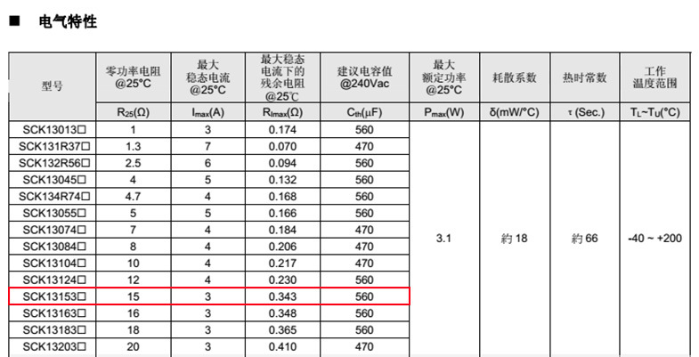 系列 D Lmin. d P Amax. Tmax. W SCK13 14.5 31 0.8±0.02 7.5±1 14.5 請(qǐng)見電氣特性表 請(qǐng)見電氣特性表