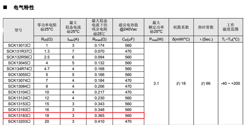 熱敏電阻型號(hào):