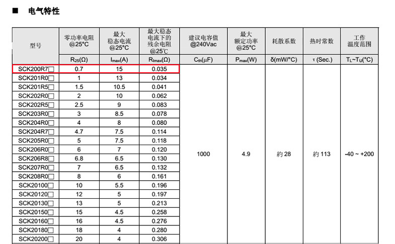 熱敏電阻: 穩(wěn)騰 熱敏電阻型號(hào): SCK200R7MSY 熱敏電阻片徑: Φ20mm 零功率電阻@25℃: 0.7Ω 工作溫度范圍: -40℃±200℃ 儲(chǔ)存溫度范圍: -40℃±85℃