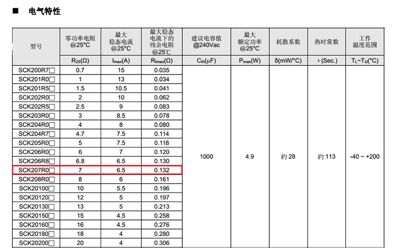 熱敏電阻: 穩(wěn)騰 熱敏電阻型號(hào): SCK207R0MSBY 熱敏電阻片徑: Φ20mm 零功率電阻@25℃: 7Ω 工作溫度范圍: -40℃±200℃ 儲(chǔ)存溫度范圍: -40℃±85℃