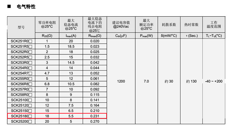 熱敏電阻: VT 熱敏電阻型號(hào): SCK25120MSY 熱敏電阻片徑: Φ25mm 零功率電阻@25℃: 12Ω 工作溫度范圍: -40℃±200℃ 儲(chǔ)存溫度范圍: -40℃±85℃