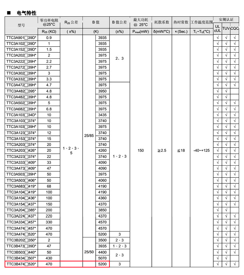 熱敏電阻型號: