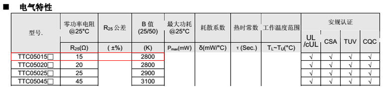 熱敏電阻型號: