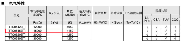 熱敏電阻型號: